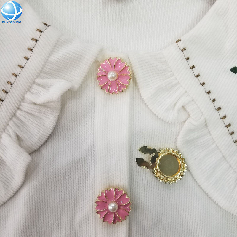 Set di gioielli con grande bottone con motivo floreale in ottone copri bottoni per camicia e non cuciono gemelli da donna con Clip sul tuo abbigliamento