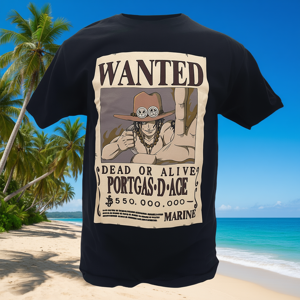 Great Eastern Entertainment One Piece Ace Wanted Poster T-shirt da uomo vestibilità regolare manica corta 100% cotone casual in jersey