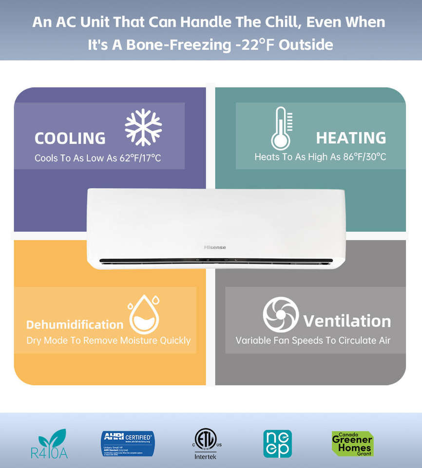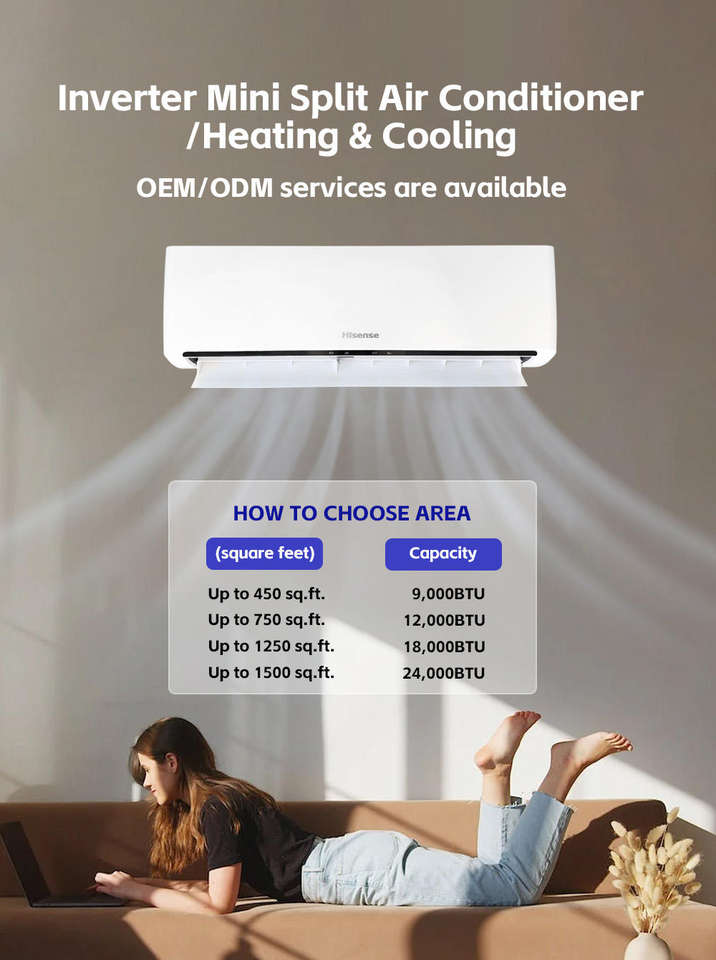 Condizionatore d'Aria Inverter Senza Condotti a Parete Gree Midea Hisense OEM 9000-36000 Btu per Raffreddamento e Riscaldamento Domestico