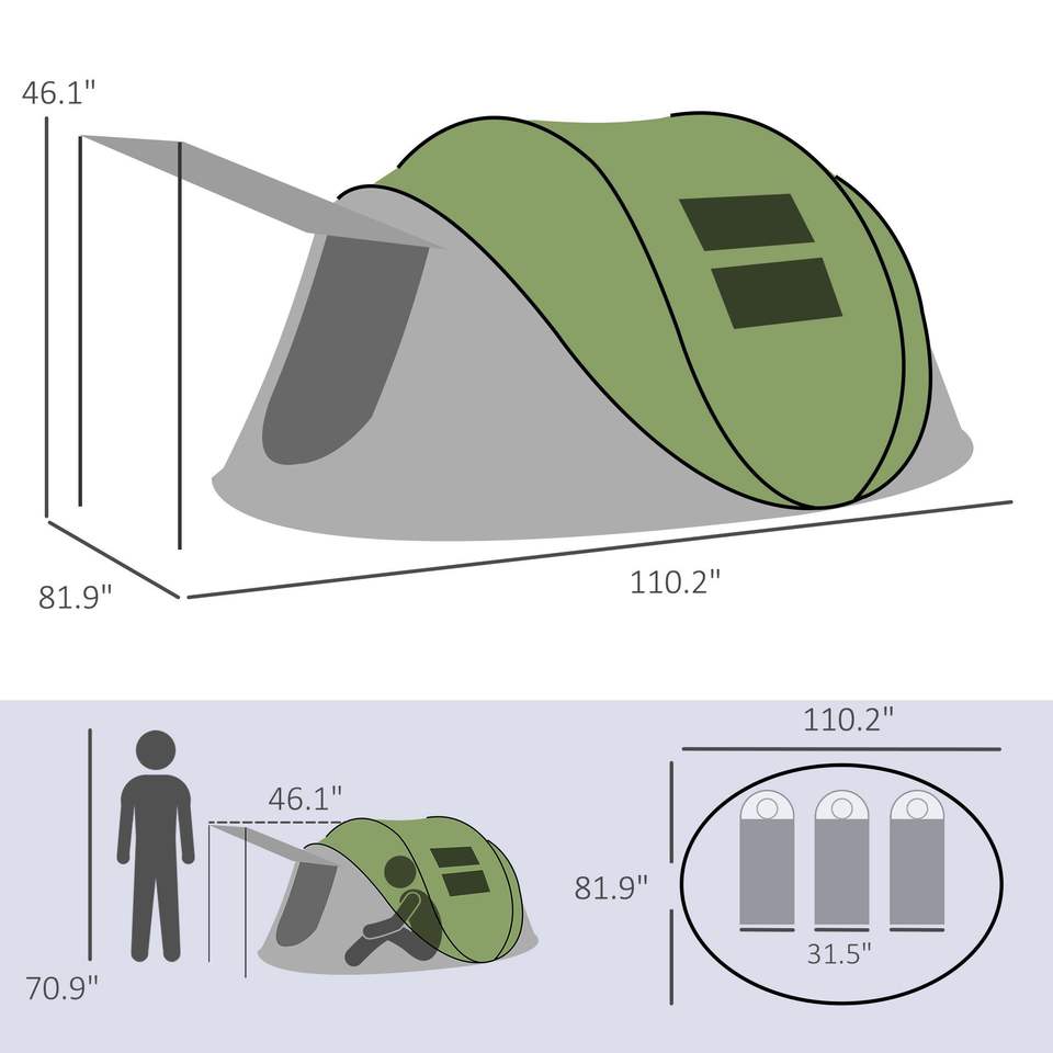 Tenda Pop-up Verde per 2-3 Persone con Veranda, Impermeabile 3000mm, Borsa per il Trasporto, per Campeggio ed Escursionismo