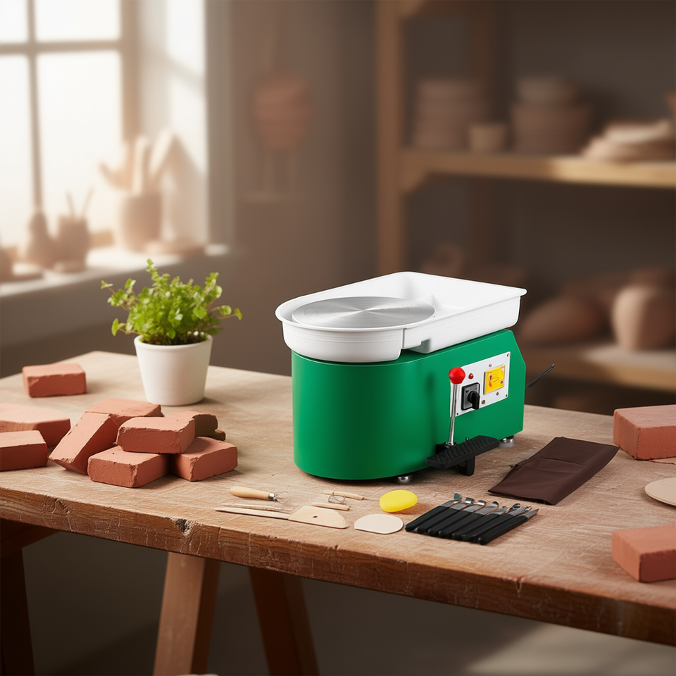 Green 350W Electric Pottery Wheel Machine With Tray And Tools Set For Ceramic Art And DIY Crafting