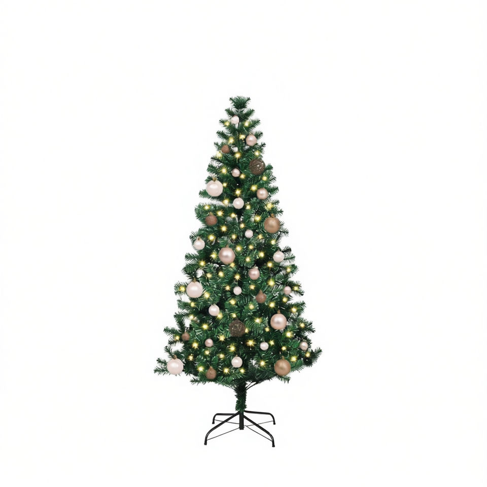 Green Artificial Pre-Lit Christmas Tree 59.1 In Warm White Led Lights Indoor Standing Base PVC Metal Construction