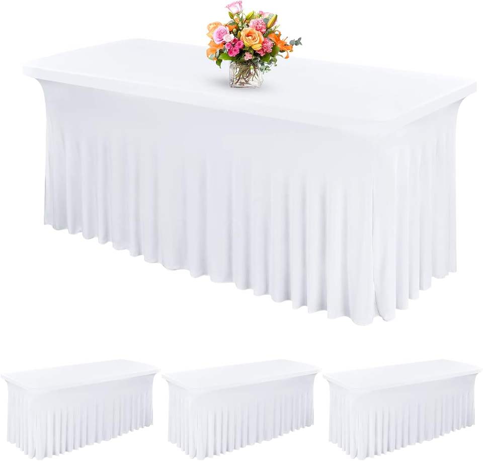 Tavoli rettangolari da 6 piedi verdi in Spandex elasticizzati antirughe in un pezzo con gonna da tavola natalizia