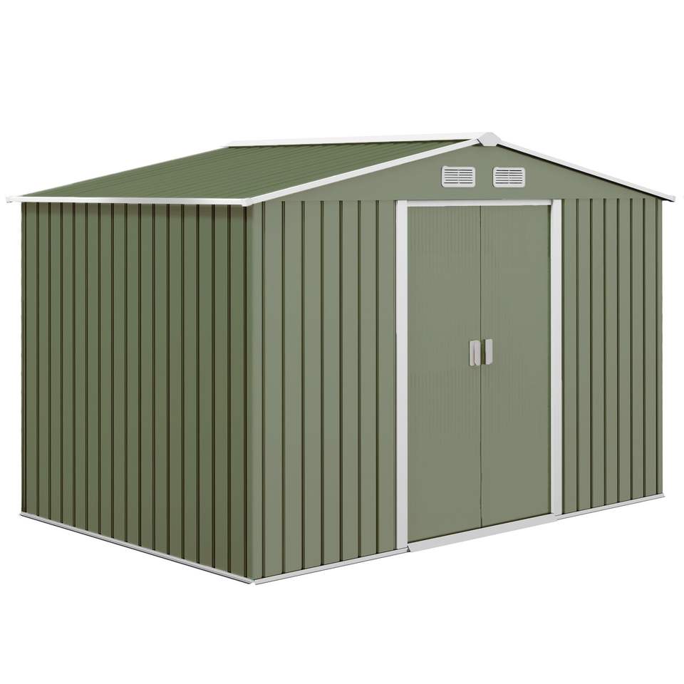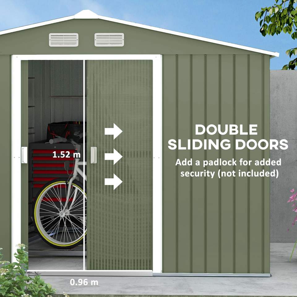 Green 9x6 Metal Garden Tool Shed with Double Sliding Doors & Air Vents for Patio Lawn Storage & Organization