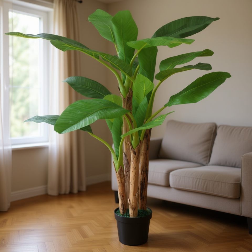 Green Artificial Banana Tree 68.9 In Plastic Pot Indoor Decorative Plant Single Piece Housewarming Gift