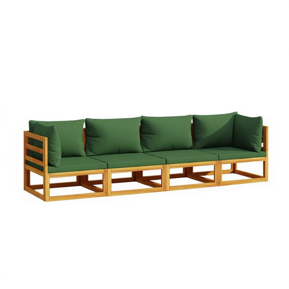 Set Lounge da Giardino Verde con Cuscini in Legno Teak, 4 Posti, Arredamento da Esterno Design Contemporaneo