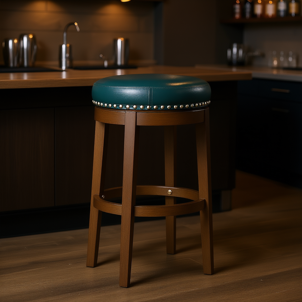 Sgabello da Bar in Ecopelle Verde con Struttura in Legno Massello, Seduta Girevole a 360 Gradi, Finitura con Borchie, Design Moderno per Arredamento Bar Domestico