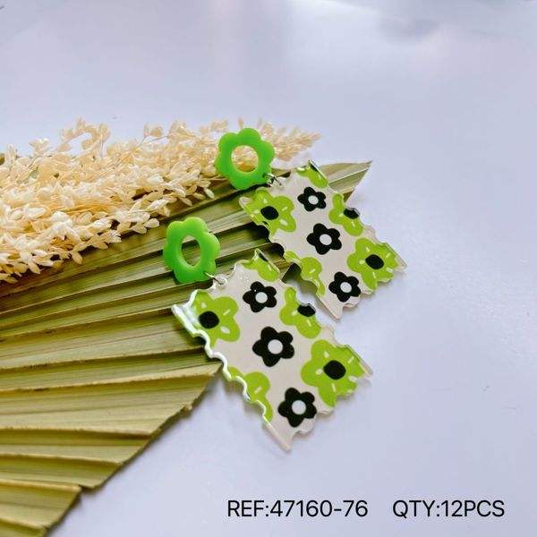 Orecchini Pendenti in Acrilico con Motivo Floreale Verde, Gioielli di Moda per Donna, Accessorio per Feste