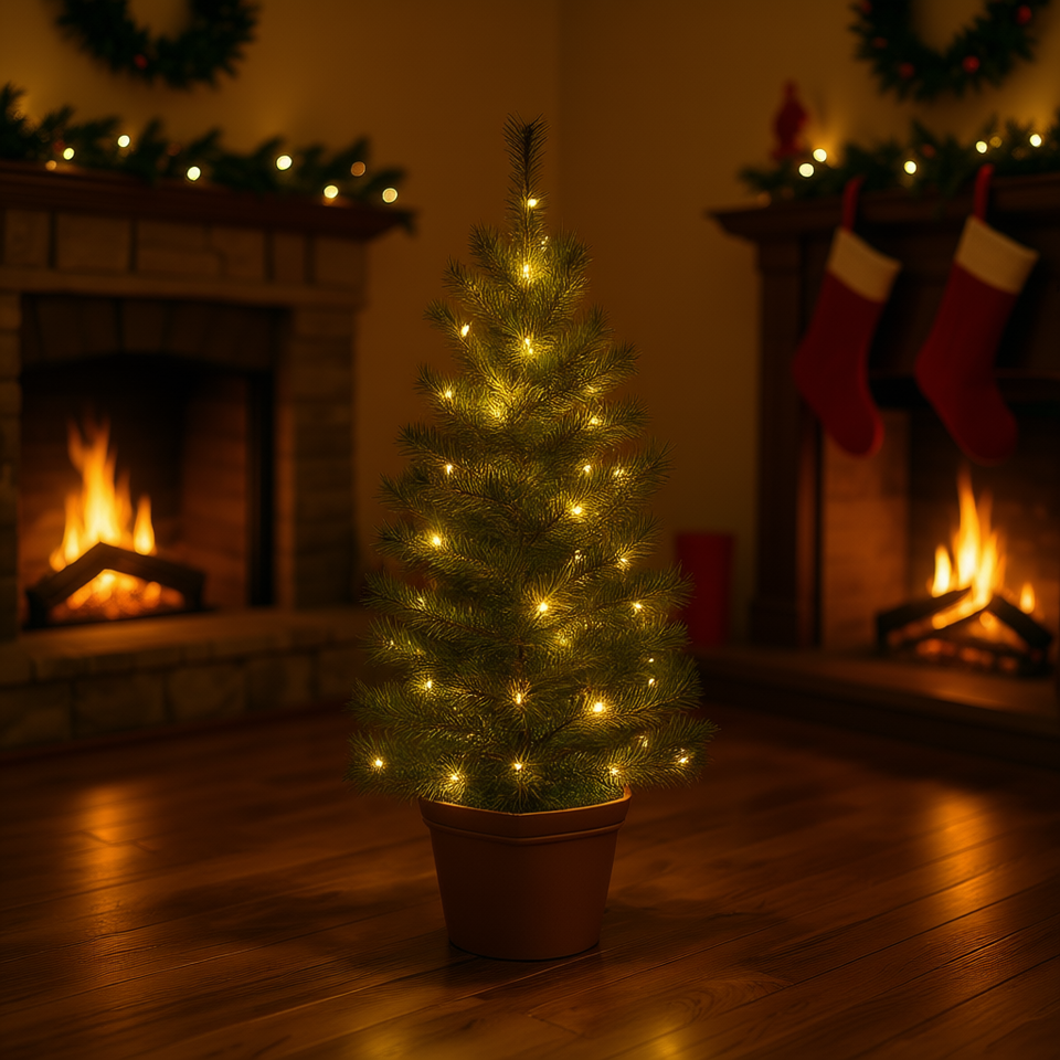 Green Gold 4 Ft Pre-Lit Potted Christmas Tree Warm White Led Indoor Tabletop Decor Festive Holiday Season Decoration