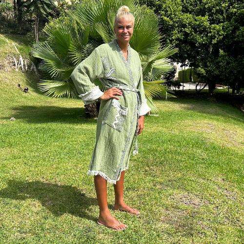 Green Hammam Bathrobe Custom Logo Breathable Plus Size Robe Set for Home Winter Night Print Solid Pattern Drawstring Sexy