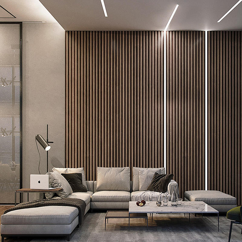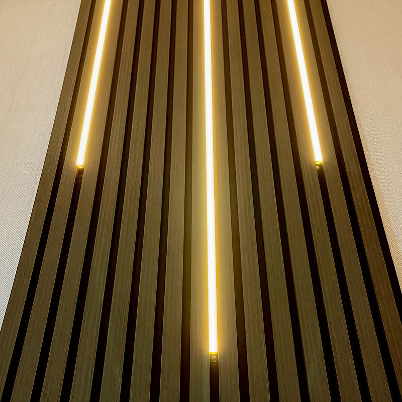 Green Hard Black Fleece Indoor LED Light Strip 3D Slat Wood Polyester Fiber Soundproof Acoustic Wall Panels Living Room Bedroom