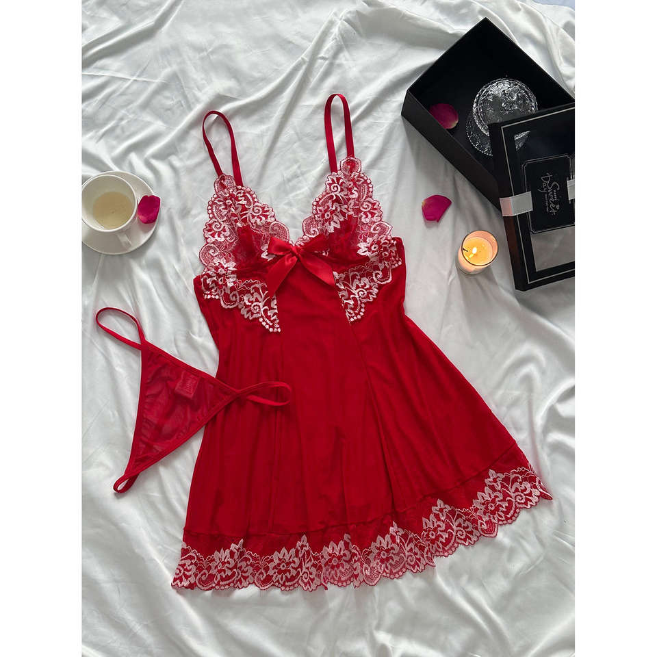 Green Lace Sleepwear Set Women's XL Elegant Romantic Strap Robe Lingerie Fashionable Sexy Nightwear