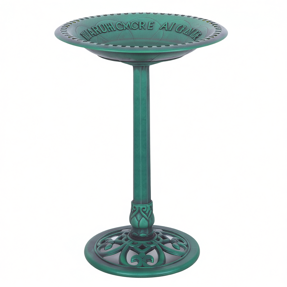 Green Pedestal Bird Bath Feeder for Outdoor Backyard Birding, Resin Traditional Design with Painted Finish, Freestanding for Wil
