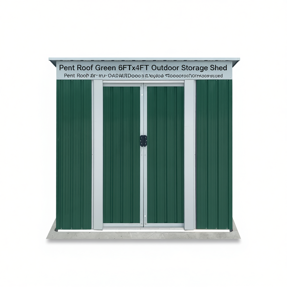 Capanno da Giardino in Metallo con Tetto a Falda Verde 6FTx4FT, Struttura Esterna Durevole con Telaio in Alluminio Verniciato a Polvere