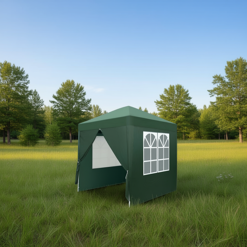 Tenda da Campeggio Verde Impermeabile 2x2m, Montaggio Rapido, Tessuto Oxford, Tenda per Tre Stagioni con Due Finestre e Porte