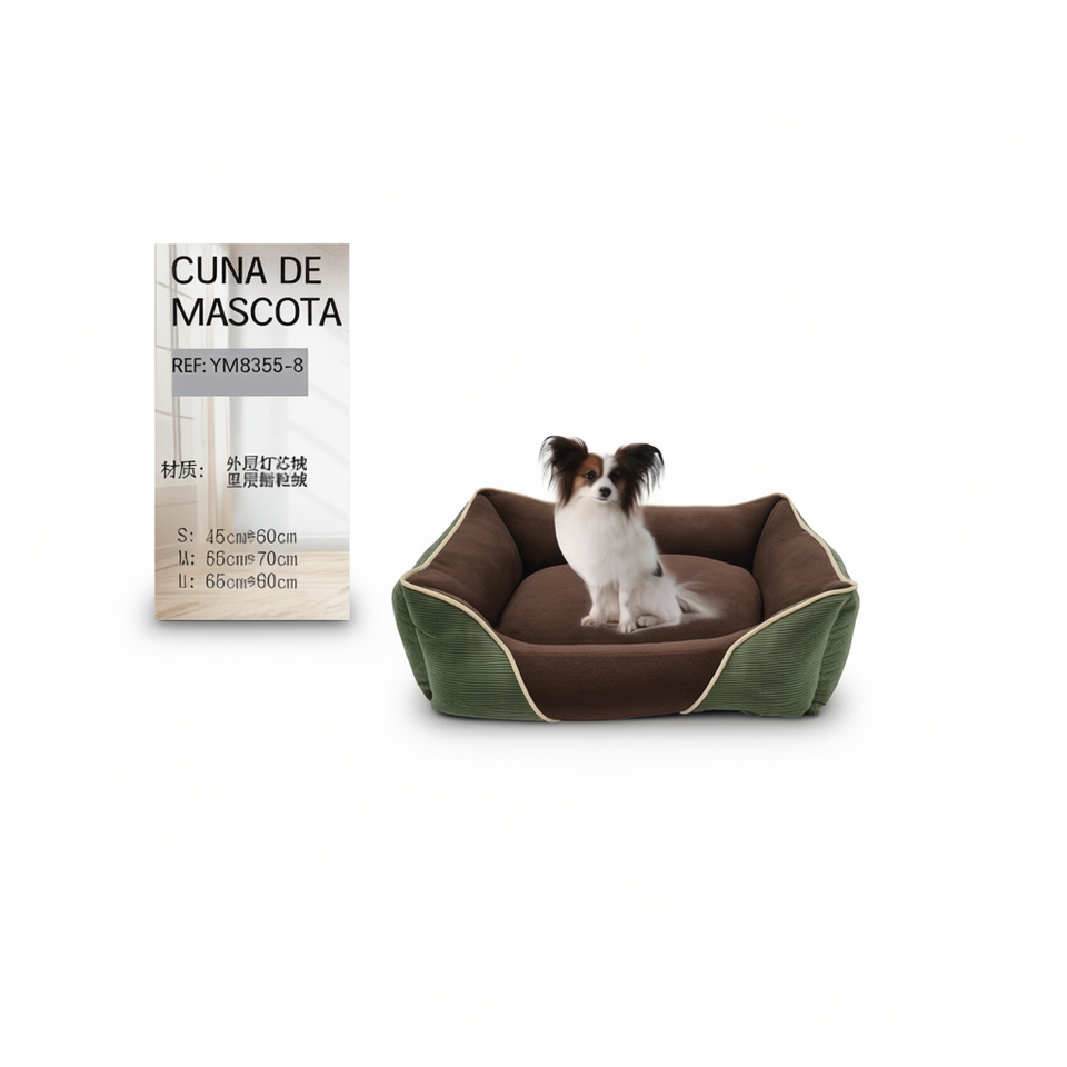 Green Three-Piece Dog Nest Set Corduroy and Polar Velvet for Pet Beds