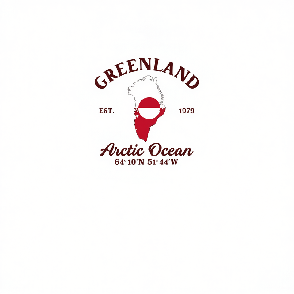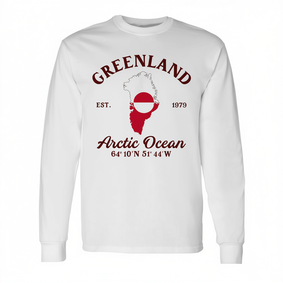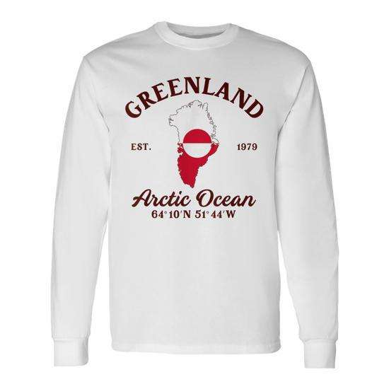 T-shirt a maniche lunghe con bandiera della mappa della Groenlandia e coordinate dell'Oceano Artico, girocollo unisex, abbigliamento promozionale per adulti