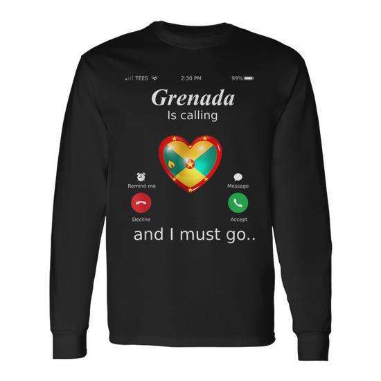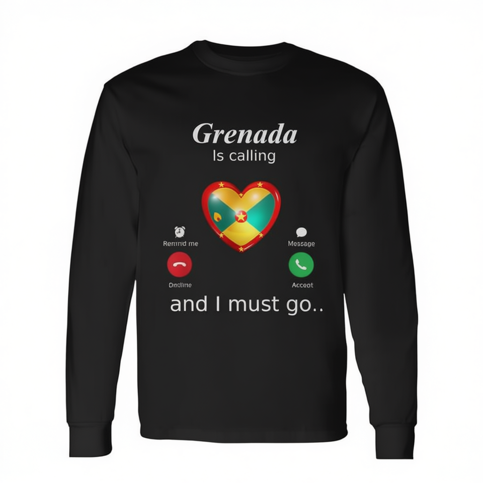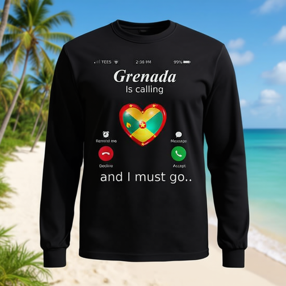 Grenada sta chiamando e devo andare, maglietta a maniche lunghe con bandiera