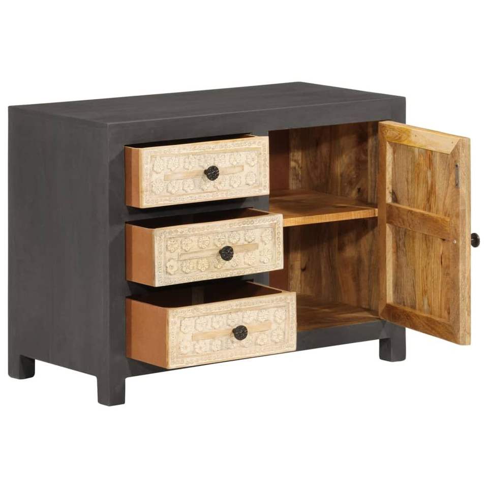 Grey And White Solid Mango Wood Rectangular Sideboard Antique Design Metal Handle Home Furniture