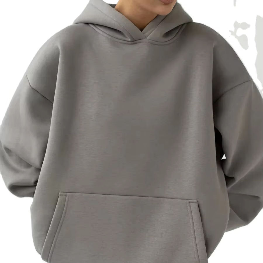 Grey Blank Women's Oversized Casual Pullover Hooded Sweatshirt with Long Sleeves and Pockets Fleece-Softer Breathable Loose Fit