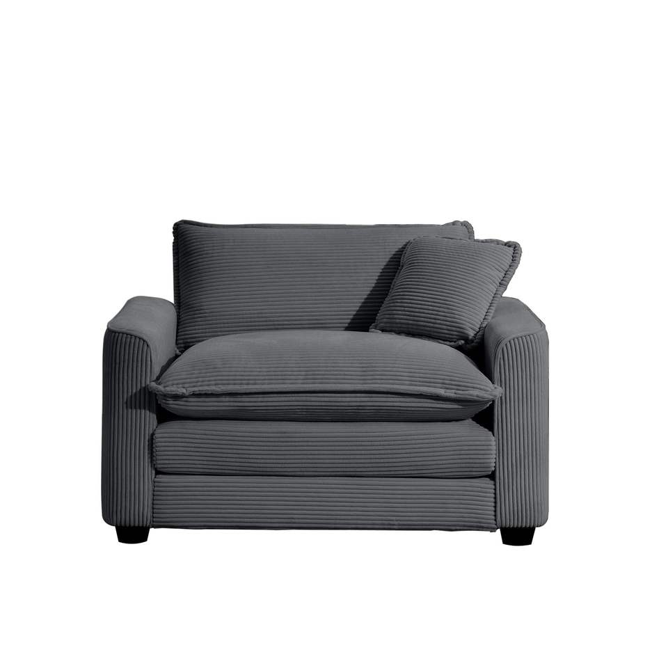 Poltrona Singola Grigia Confortevole con Seduta Profonda e Cuscino, in Tessuto Corduroy per Soggiorno e Camera da Letto, Stile Club Multiuso