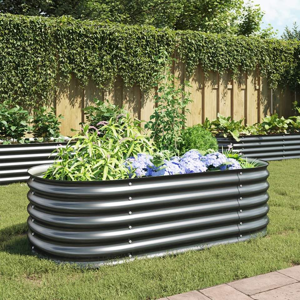 Grey Galvanized Steel Garden Raised Bed 63 X 31.5 X 17.3 Inches Flower Pots & Planters