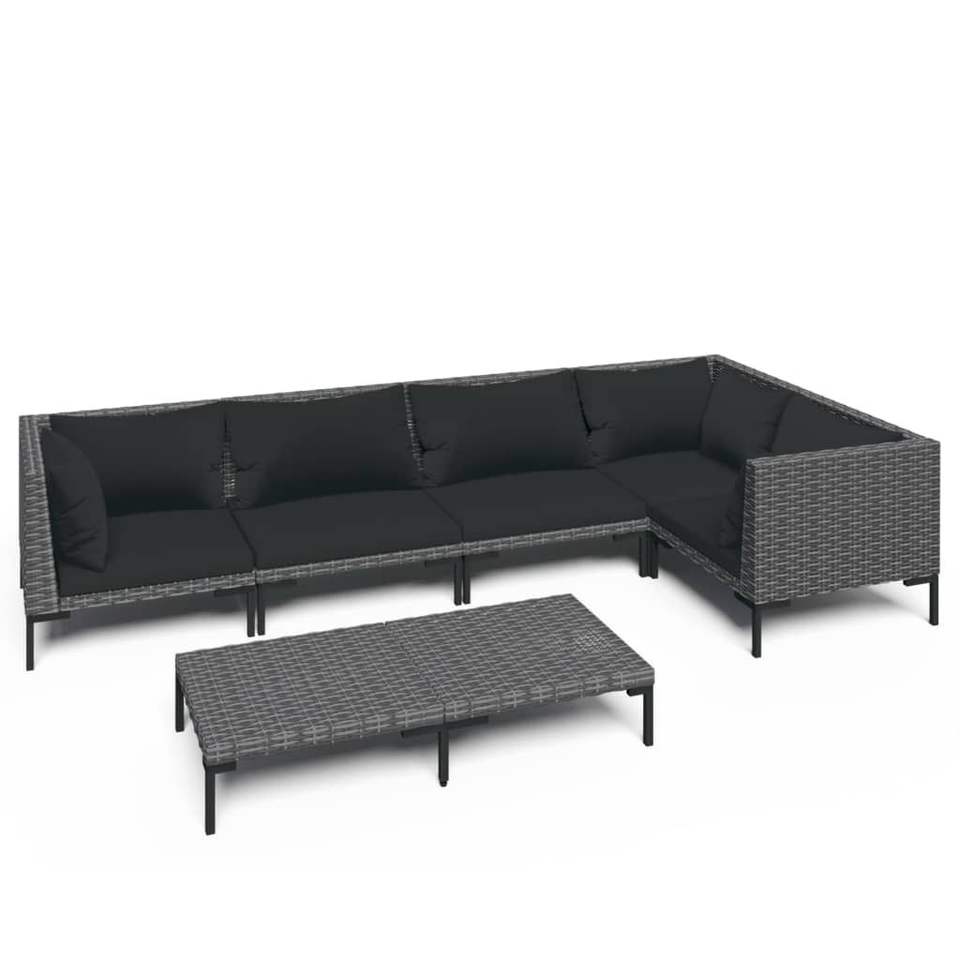 Set Lounge da Giardino Grigio 6 Posti in Rattan, Arredamento da Esterno dal Design Contemporaneo Resistente alle Intemperie
