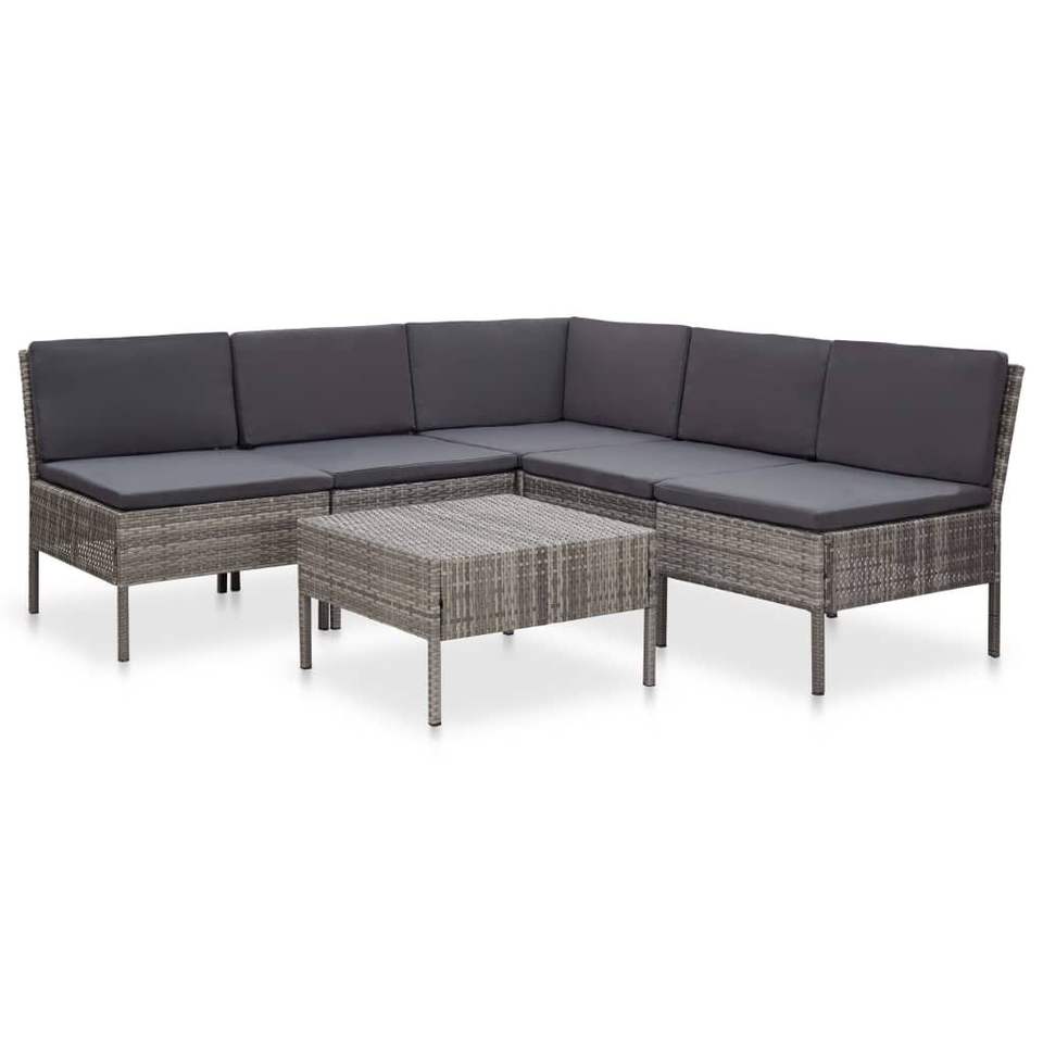 Set Lounge da Giardino Grigio in Rattan con Cuscini, 6 Posti, Arredamento da Esterno dal Design Contemporaneo
