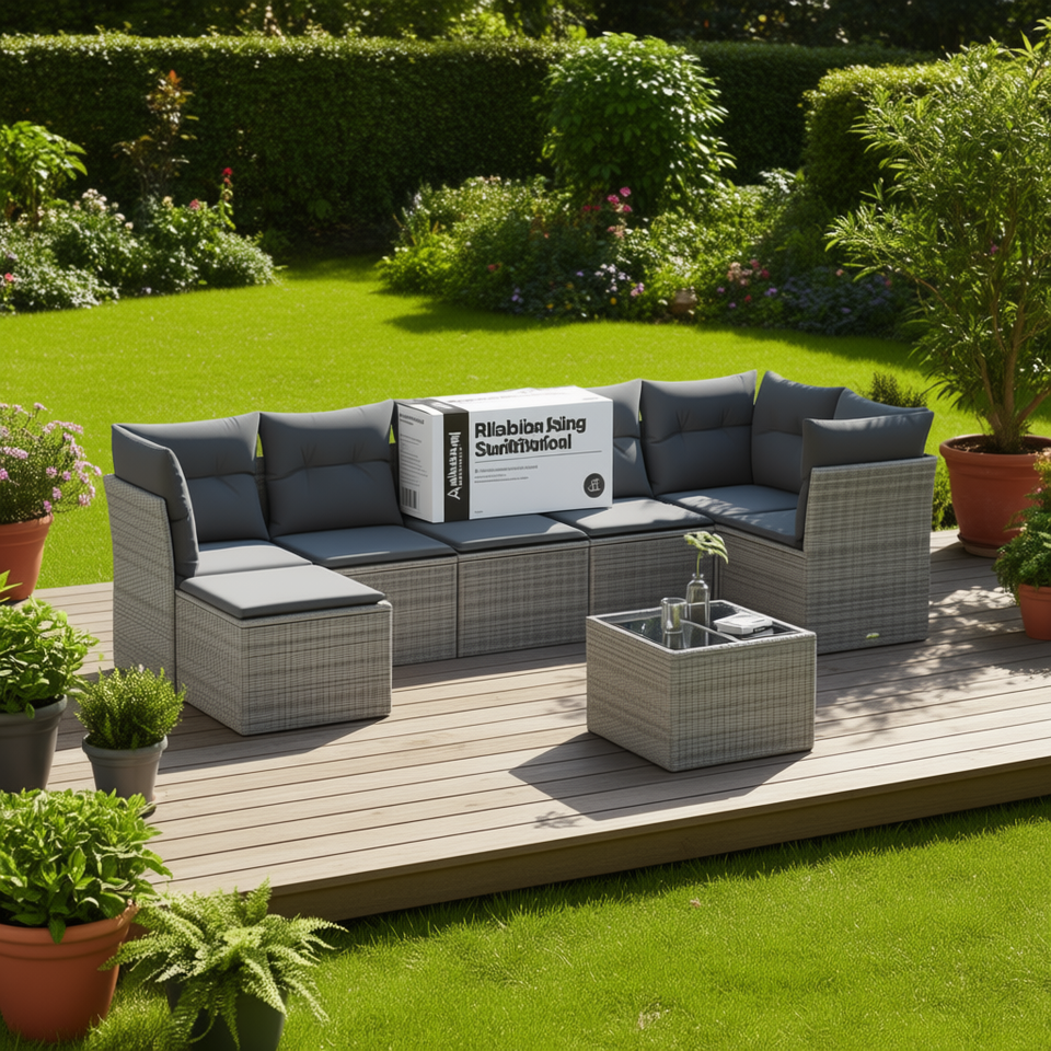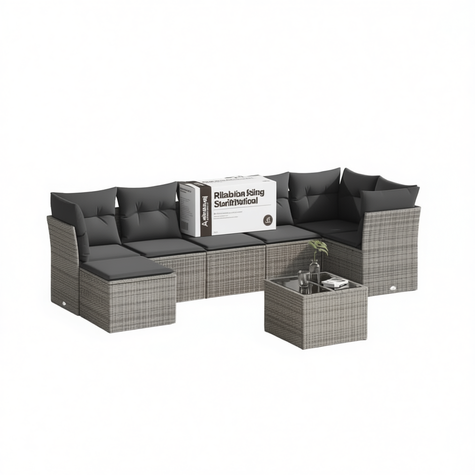Set Divano da Giardino Grigio 6 Posti in Rattan, Arredamento da Esterno Contemporaneo Resistente alle Intemperie