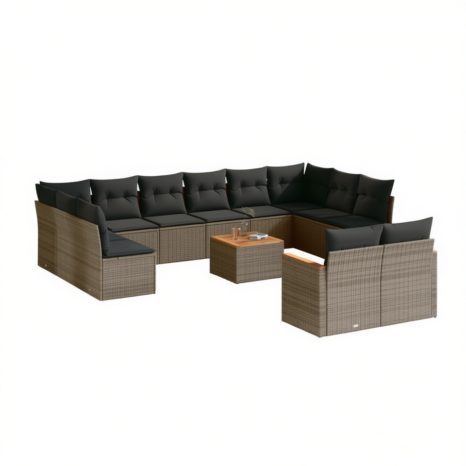 Set Divano da Giardino Grigio con Cuscini, Resistente ai Raggi UV, in Rattan PE, Arredamento da Esterno dal Design Contemporaneo, Impermeabile