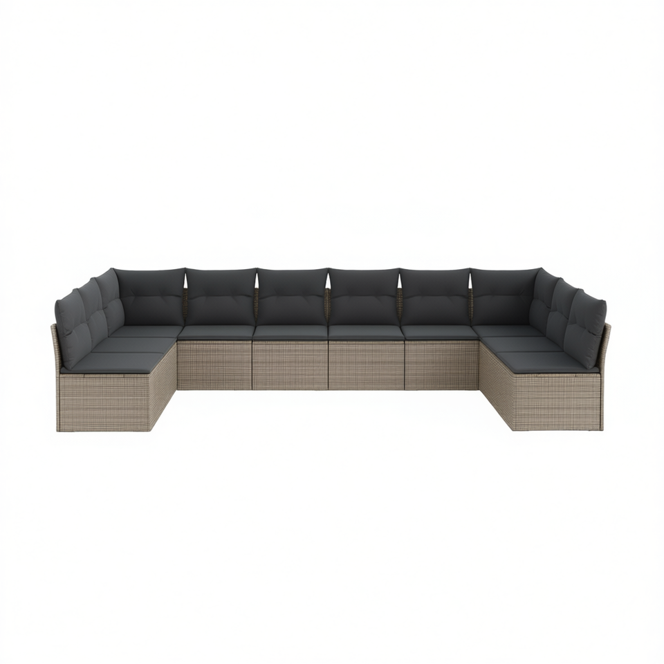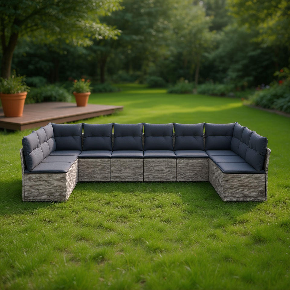 Set Divano da Giardino in Rattan Grigio 6 Posti, Arredamento da Esterno Resistente alle Intemperie, Design Contemporaneo
