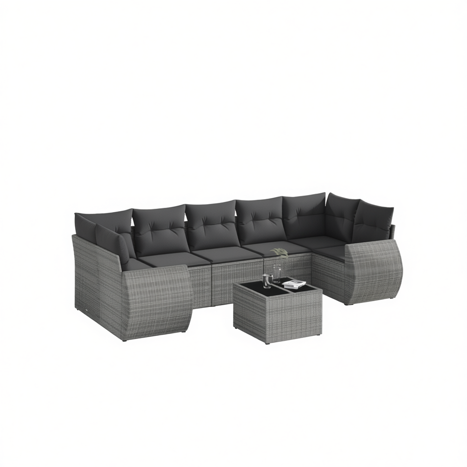Set Divano da Giardino in Rattan Grigio 6 Posti Resistente alle Intemperie Arredamento da Esterno Design Contemporaneo
