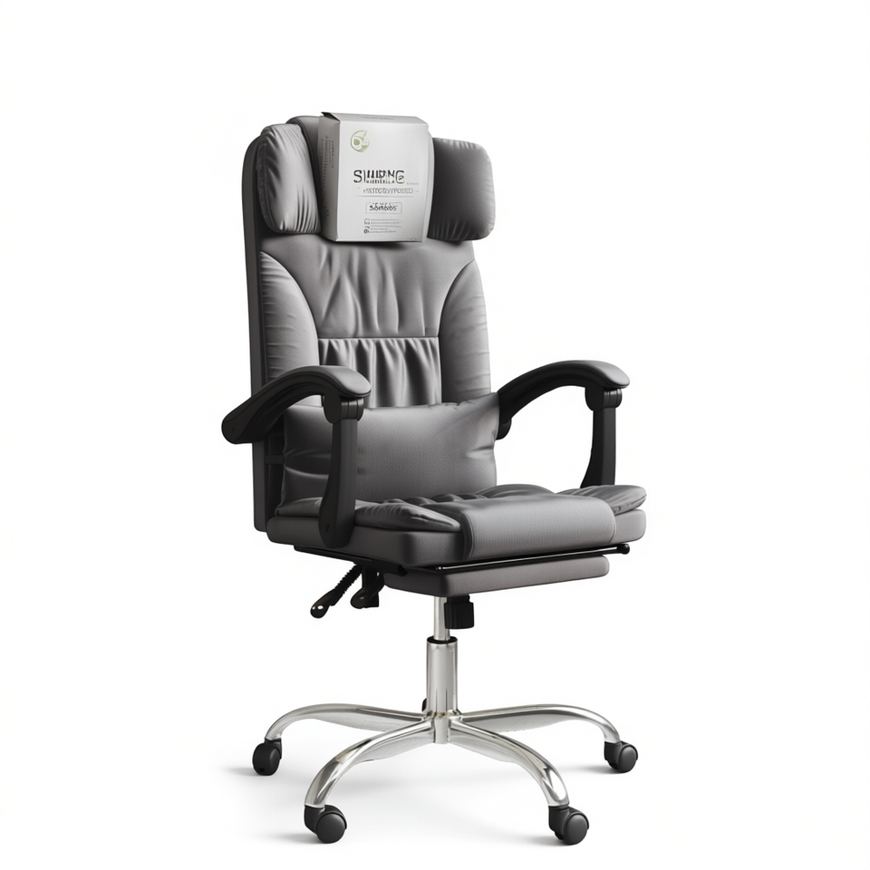 Sedia da Ufficio Massaggiante Siwang in Pelle PU Grigia con Braccioli Regolabili, Base Cromata e Rotelle