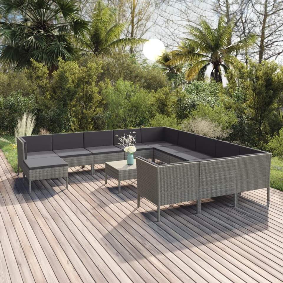 Set Lounge da Giardino in Rattan PE Grigio con Struttura in Acciaio Verniciato a Polvere e Materiale in Poliestere Resistente