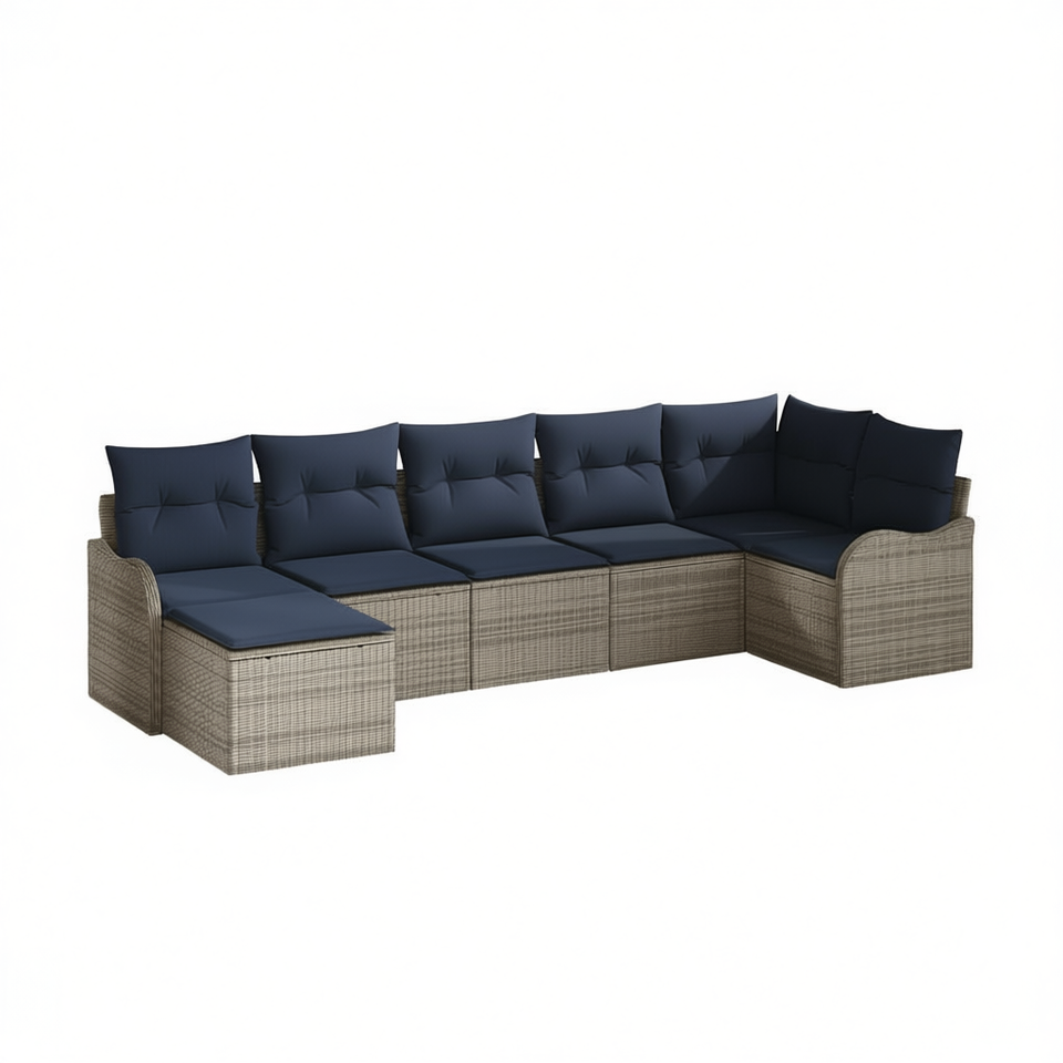 Set Divano da Giardino in Polyrattan Grigio 7 Pezzi, Arredamento da Esterno Resistente alle Intemperie, Design Contemporaneo