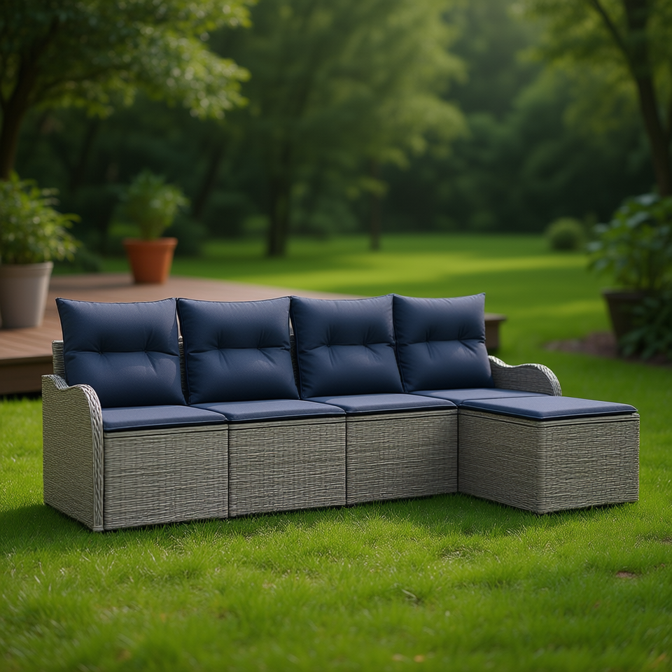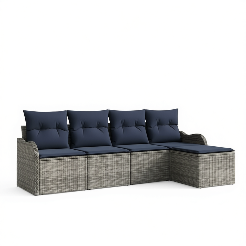 Set Divano da Giardino in Polyrattan Grigio a 4 Posti, Resistente alle Intemperie, Arredamento da Esterno dal Design Contemporaneo