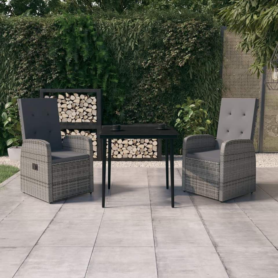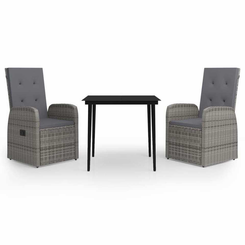 Set da Pranzo da Giardino in Rattan Grigio per 2 Persone, Arredamento Esterno Contemporaneo Resistente alle Intemperie