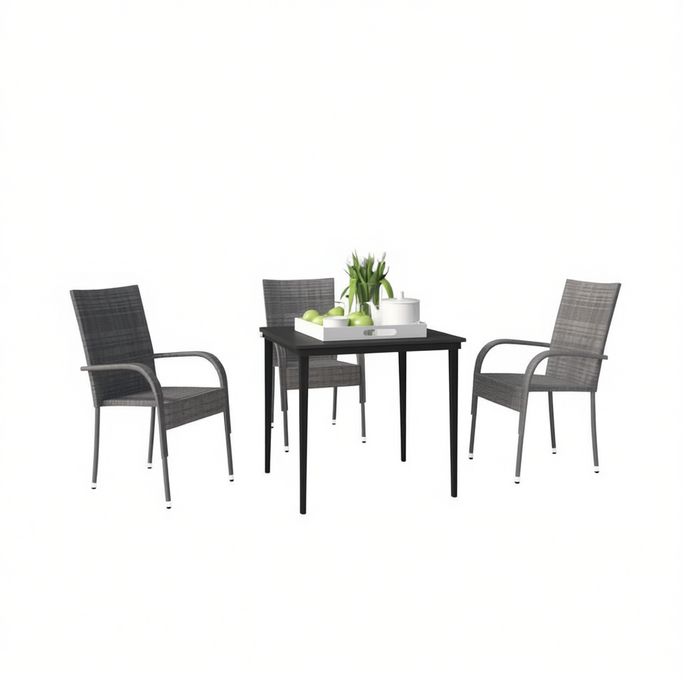 Set da Pranzo da Giardino in Rattan Grigio, 3 Posti, Struttura in Metallo, Resistente alle Intemperie, Design Contemporaneo