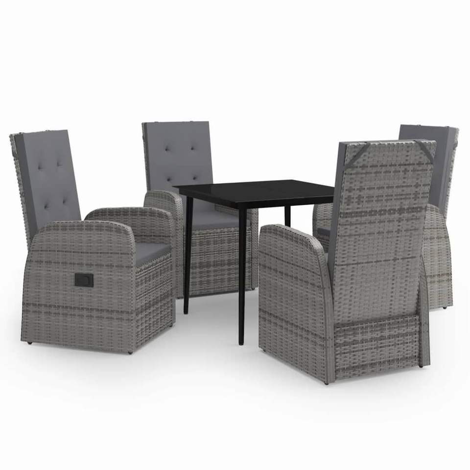 Set da Pranzo da Giardino in Rattan Grigio per 4 Persone, Resistente alle Intemperie, Design Contemporaneo