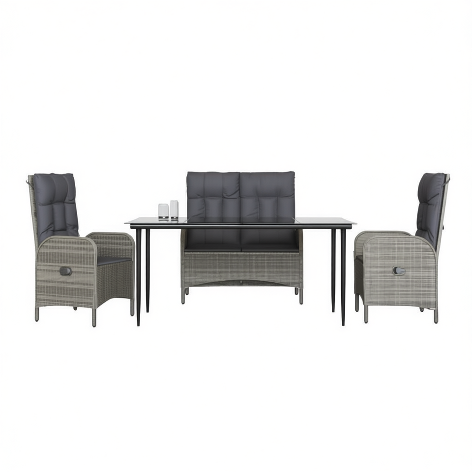 Set da Pranzo da Giardino in Rattan Grigio per 4 Persone, Resistente alle Intemperie, Design Contemporaneo con Struttura in Metallo