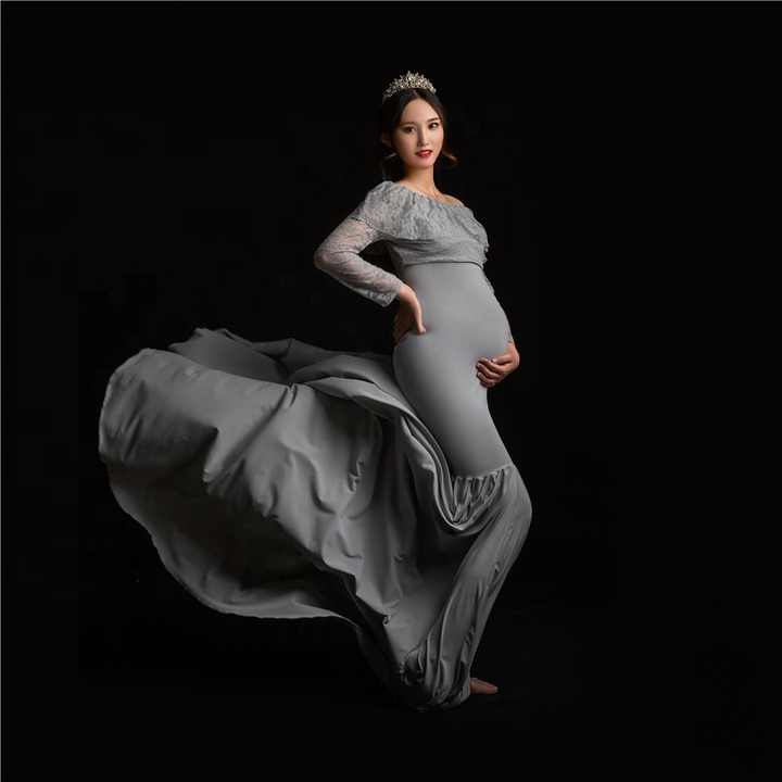 Grigio Slim fit Maglia Di Maternità di Lunghezza Del Pavimento Del Vestito Con Scollo A V Abito Di Maternità per il Servizio Fotografico Wq14 Abito Da Sposa per la Fotografia