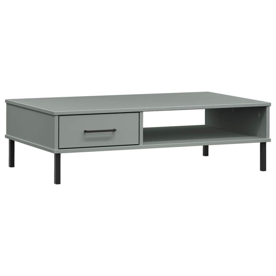 Grey Solid Pine Wood and Metal Low Coffee Table Elegant and Durable Furniture