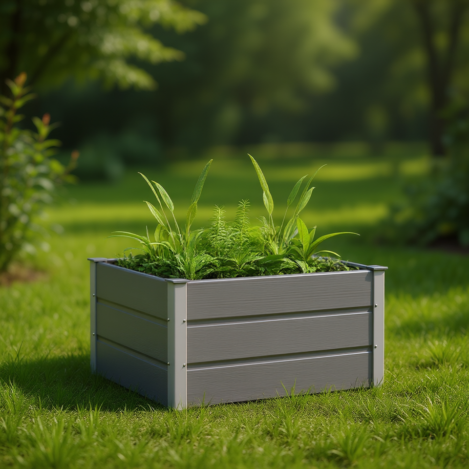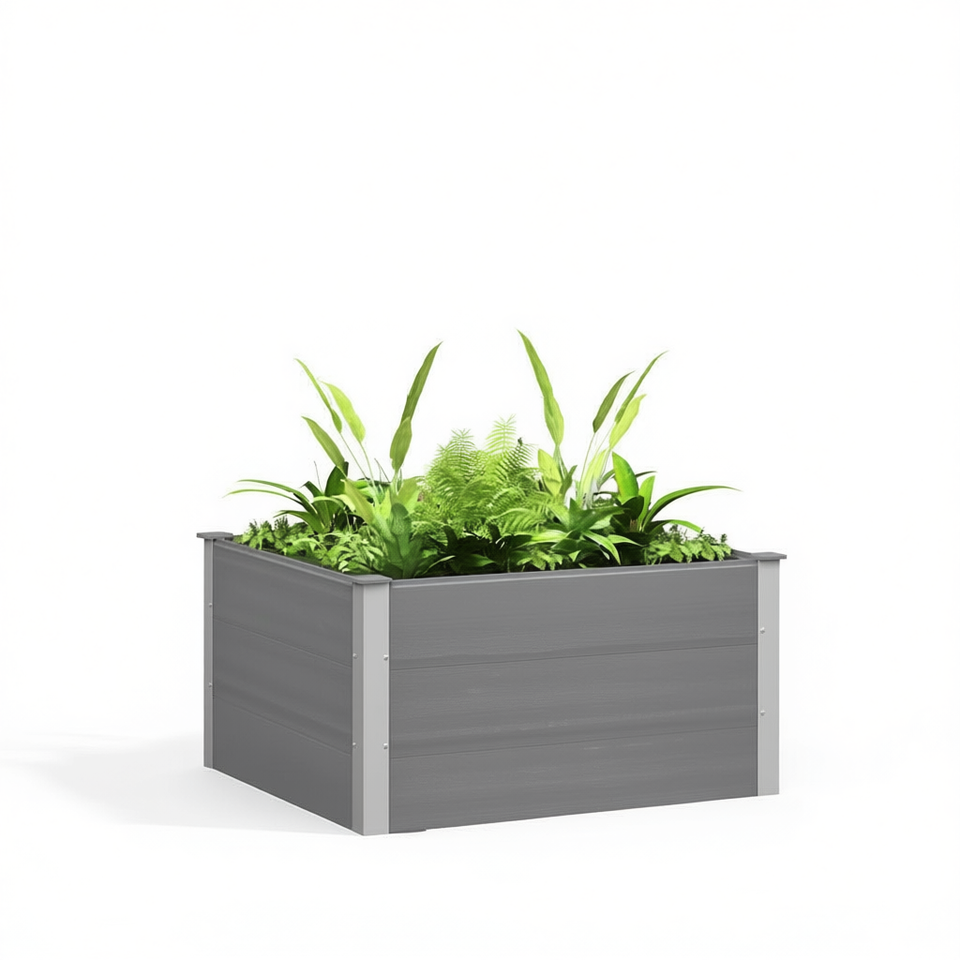 Fioriera Rialzata Quadrata in Composito Legno-Plastica Grigio, Design Moderno, Verniciata a Polvere per Giardino