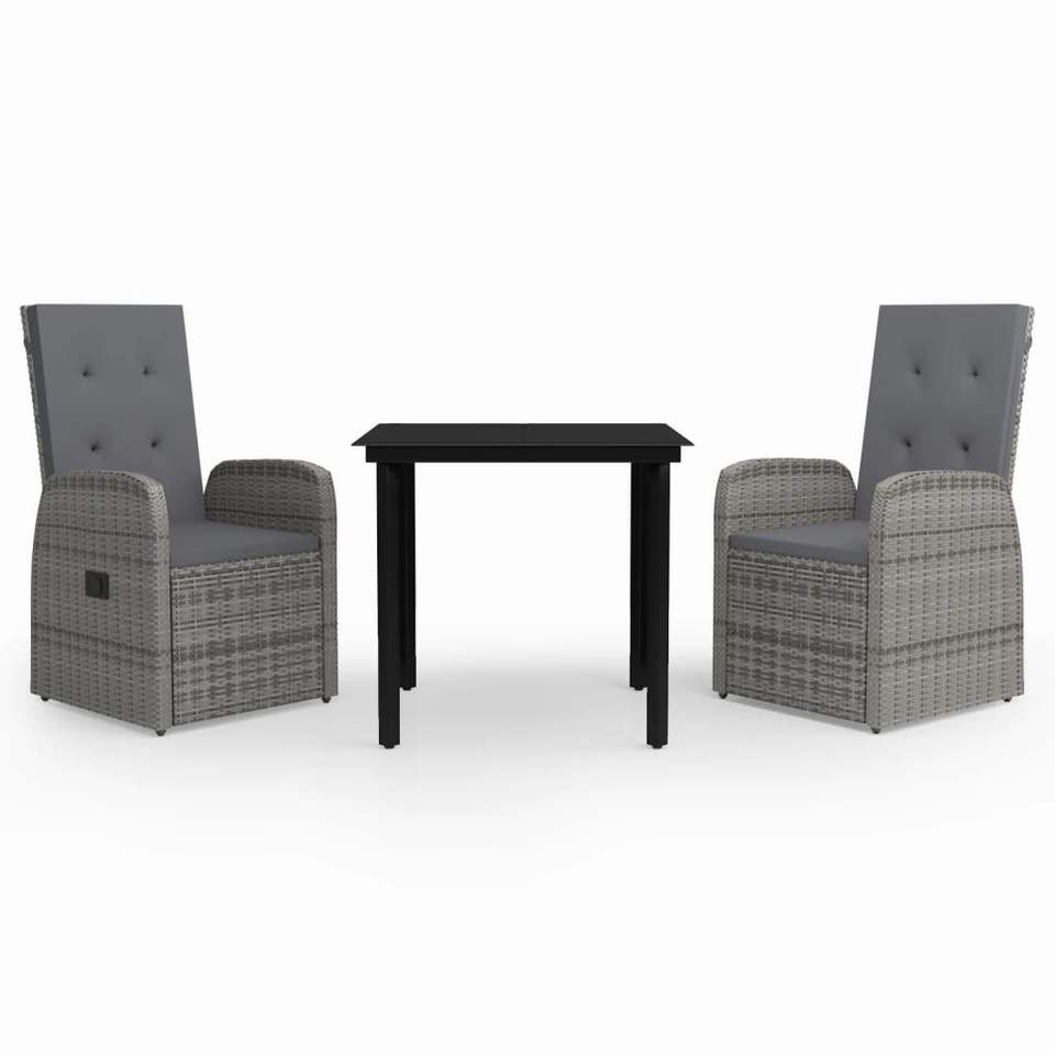 Set da Pranzo da Giardino in Rattan Grigio per 2 Persone, Resistente alle Intemperie, Arredamento da Esterno in Stile Contemporaneo