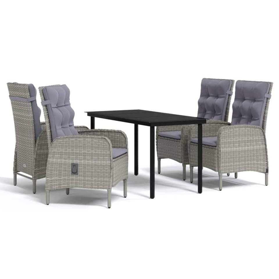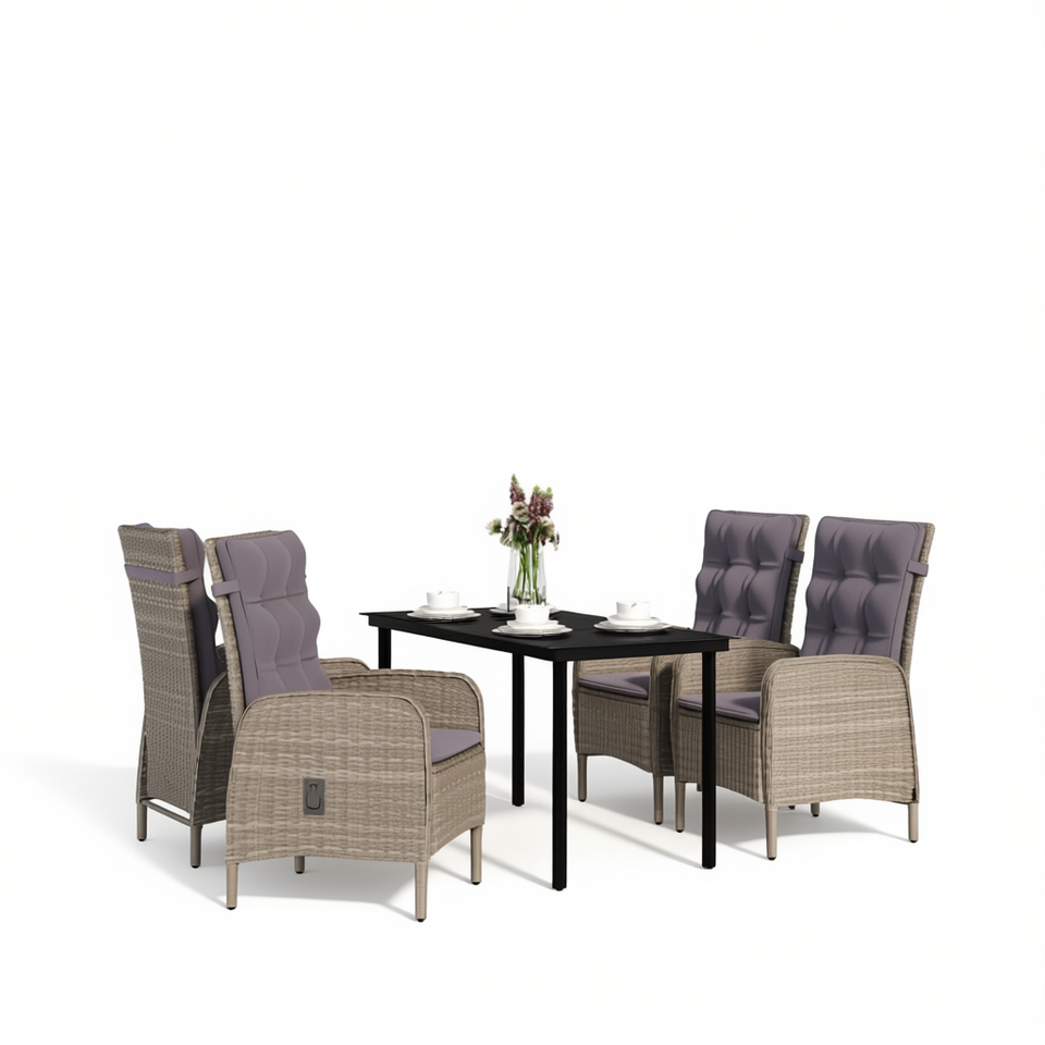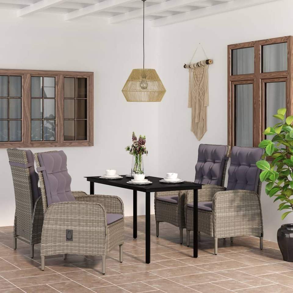 Set da Pranzo da Giardino in Rattan Grigio per 4 Persone, Arredamento da Esterno Resistente alle Intemperie, Design Contemporaneo