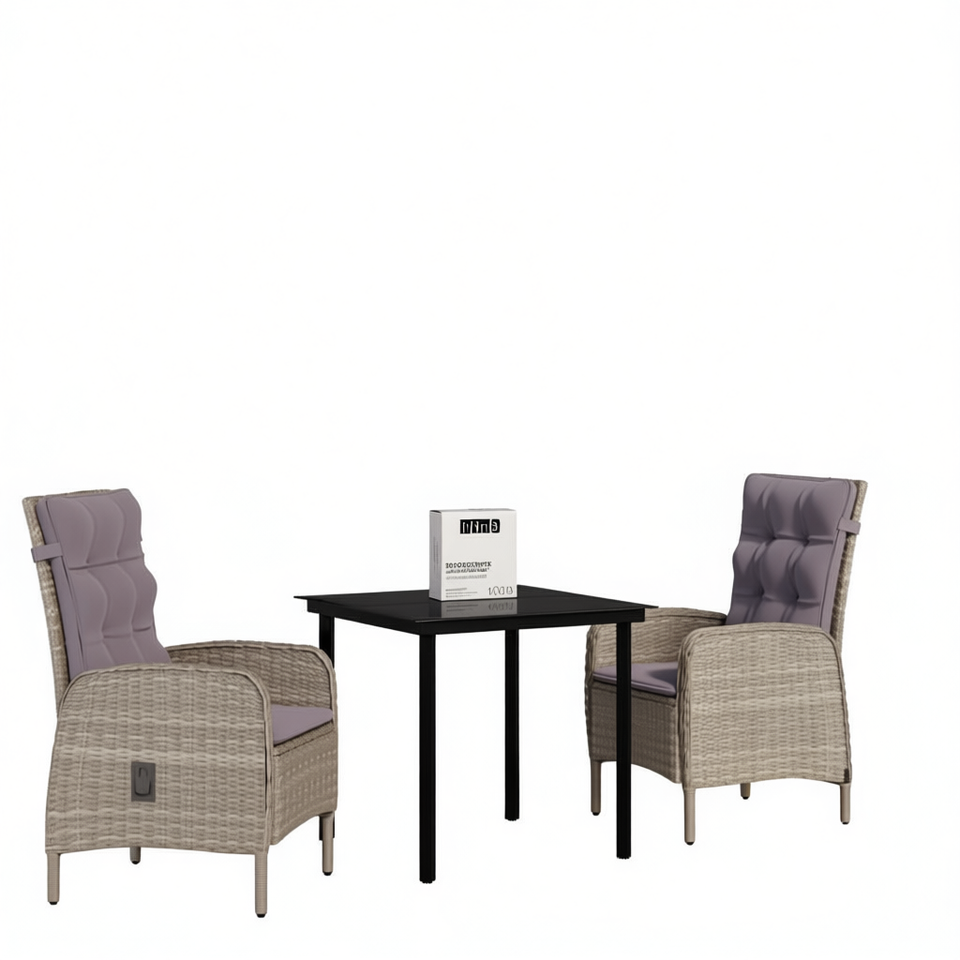 Set da pranzo da giardino in rattan per 2 persone, resistente alle intemperie, mobili da esterno in stile contemporaneo con struttura in acciaio grigio