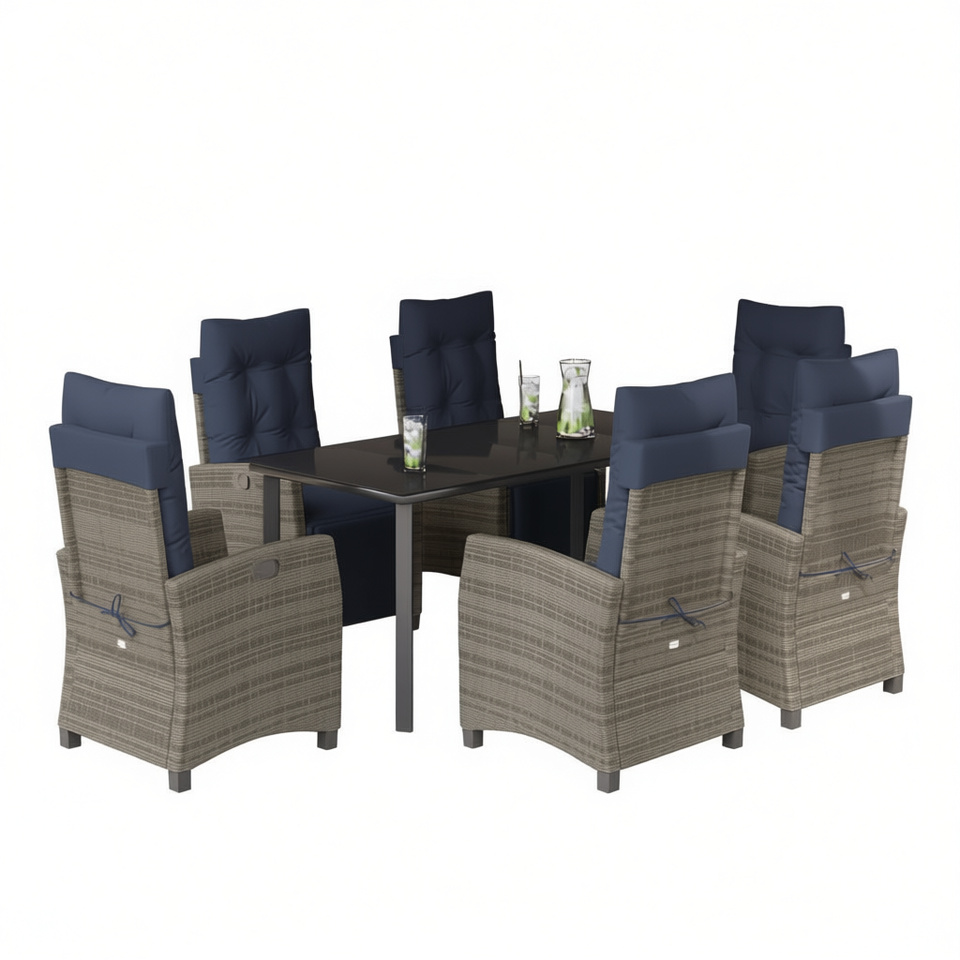 Set da Pranzo da Giardino in Rattan Grigio per 6 Persone, Resistente alle Intemperie, Design Contemporaneo