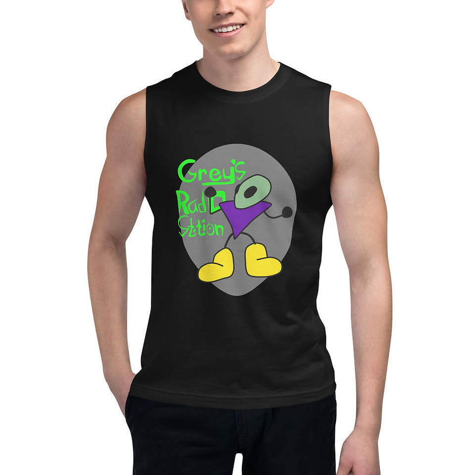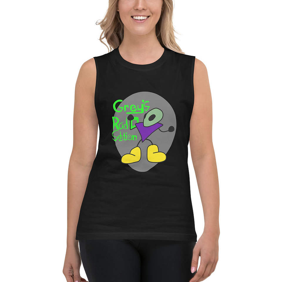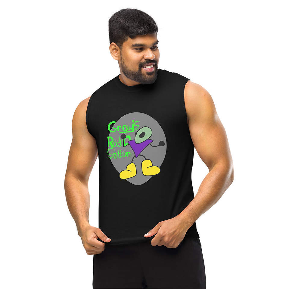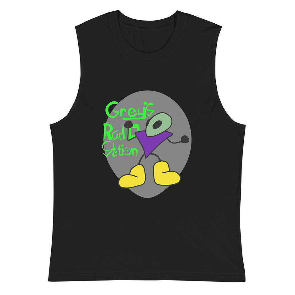 Maglietta Muscle Grey's Radio Station in Tessuto Pesante 250gsm, Tinta Unita, Tintura a Compressione, Stampa Serigrafica DTG