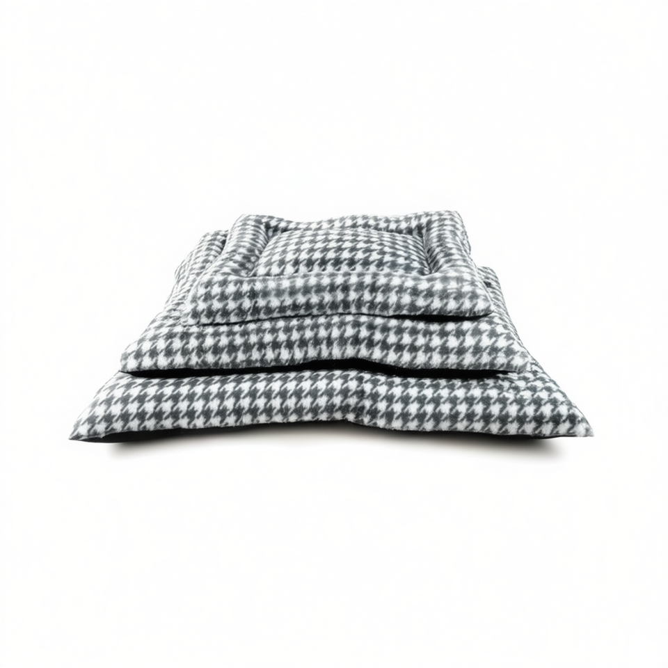 Grid Rabbit Plush Dog Mat 3-Piece Set Thousand Bird Collection in Grey-Premium Pet Beds