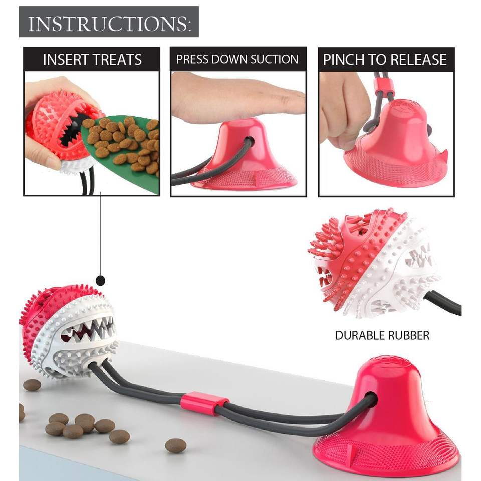 Giocattolo da Masticare per Cani Grip N' Play, Palla Dispensatrice di Snack con Ventosa